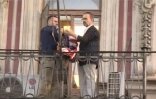 "5 канал" опубликовал кадры, на которых можно увидеть, как иностранные дипломаты снимают флаг США со здания генконсульства в Санкт-Петербурге.