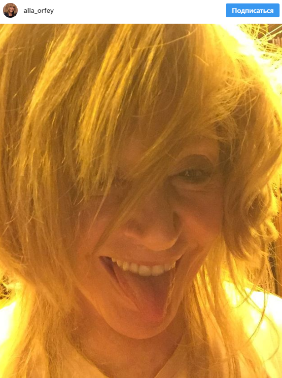 На своей официальной странице в социальной сети "Инстаграм" 69-летняя Примадонна выставила свежий снимок. На нем она изображена портретом: эффектные волосы Аллы Борисовны прикрывают ее лицо, а сама певица хулигански показывает язык.