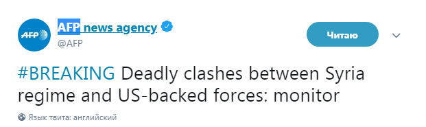 Также поступают данные об атаке американской авиации на позиции сирийских правительственных сил. В частности, агентство "Франс-Пресс" сообщает о "смертоносных столкновениях" сирийской армии с американскими силами, однако официально эта информация не подтверждена.