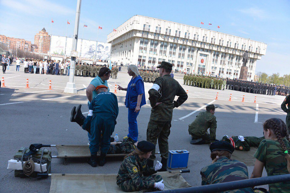 По предварительной информации, дети около 45 минут по стойке смирно стояли под палящим солнцем, в результате чего, вероятно, упали в обморок.