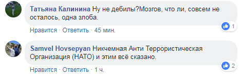 "Никчемная Анти-Террористическая Организация (НАТО), и этим все сказано (стиль автора сохранен)", - написал пользователь Самвел Ховсепян.