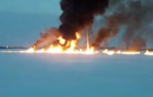 Пламя фонтаном бьет: пожар в акватории реки Обь попал на видео