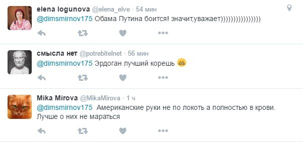 Пользователи довольно бурно отреагировали на это. Некоторые написали, что Обама боится Путина, поэтому отказался жать ему руку. Также некоторые подчеркнули: "Американские руки не по локоть, а полностью в крови. Лучше о них не мараться".