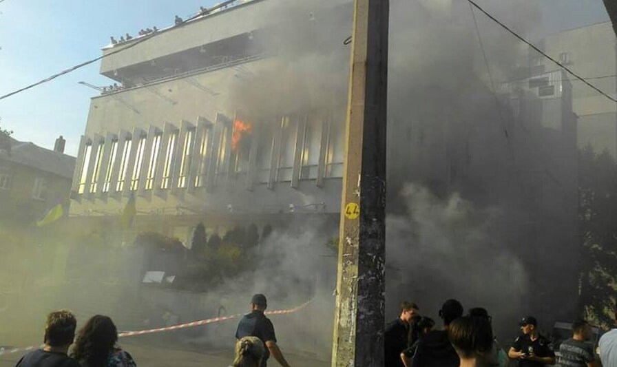 Как утверждают прибывшие на место инцидента пожарные, эпицентр возгорания находился внутри здания телеканала, сообщает "Российский Диалог".