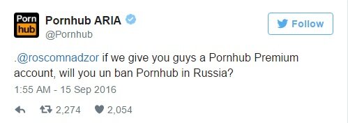 В Pornhub предложили службе разблокировать сайт для доступа российским посетителям, взамен изъявив о готовности раздать премиальные доступы к порноматериалам всем без исключения сотрудникам Роскомнадзора.