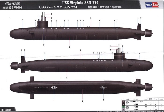 Имея в длину 115 метров, "Вирджиния" всего на пять метров короче "Ясеня". Однако водоизмещение у нее в два раза меньше. Экипаж лодки 113 человек, а в качестве силовой установки на ней используется ядерный реактор типа GE S9G, который приводит в действие не обычный винт, а две турбины и