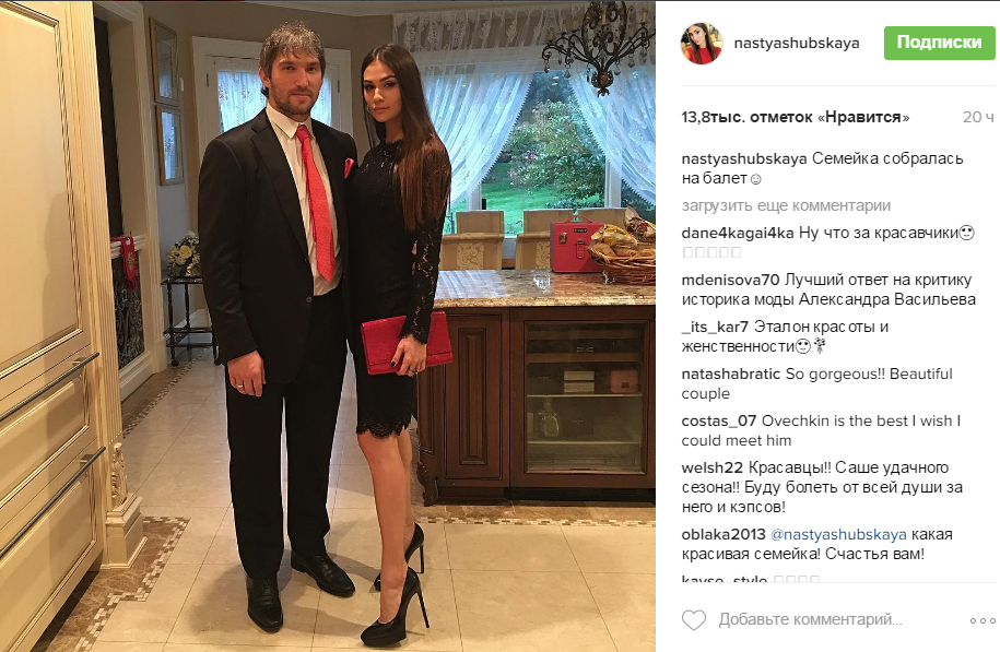 Недавно Анастасия выложила снимок со новоиспеченным супругом. Вместе с Александром Шубская собралась в балет. Для мероприятия супруги подобрали красивые наряды: Овечкин надел классический черный костюм с красным галстуком, а Шубская нарядилась в красивое платье и туфли на шпильках. "Семейка собралась на балет", - подписала снимок девушка.
