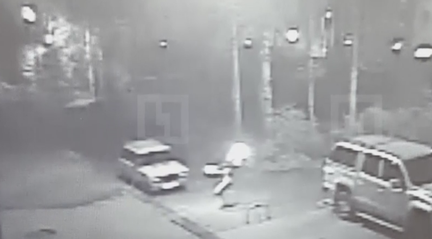 Очевидцы делятся кадрами нападения на здание. На фото видно, как двое неизвестных подбежав к зданию, зажигают фитили у бутылок с зажигательной смесью и бросают их в одно и то же офисное помещение. В окнах дома напротив прекрасно видно вспышку, когда склянка с коктейлем Молотова разбилась о фасад.