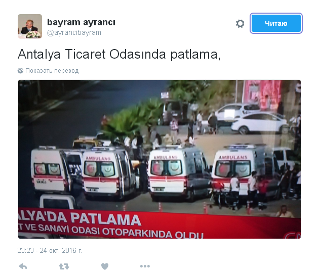 Напомним, 6 октября в Стамбуле вблизи полицейского участка произошел взрыв заминированного автомобиля. В результате инцидента пять человек получили ранения. Спустя некоторое время сотрудники правоохранительных органов объявили в розыск байкера, который, как предполагается, привел в действие взрывное устройство.