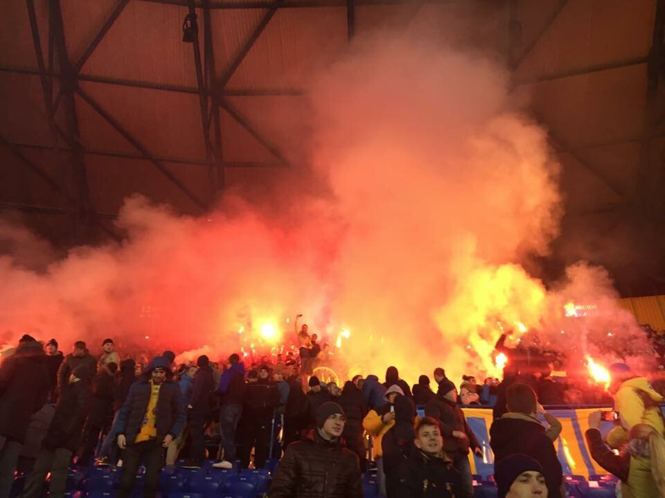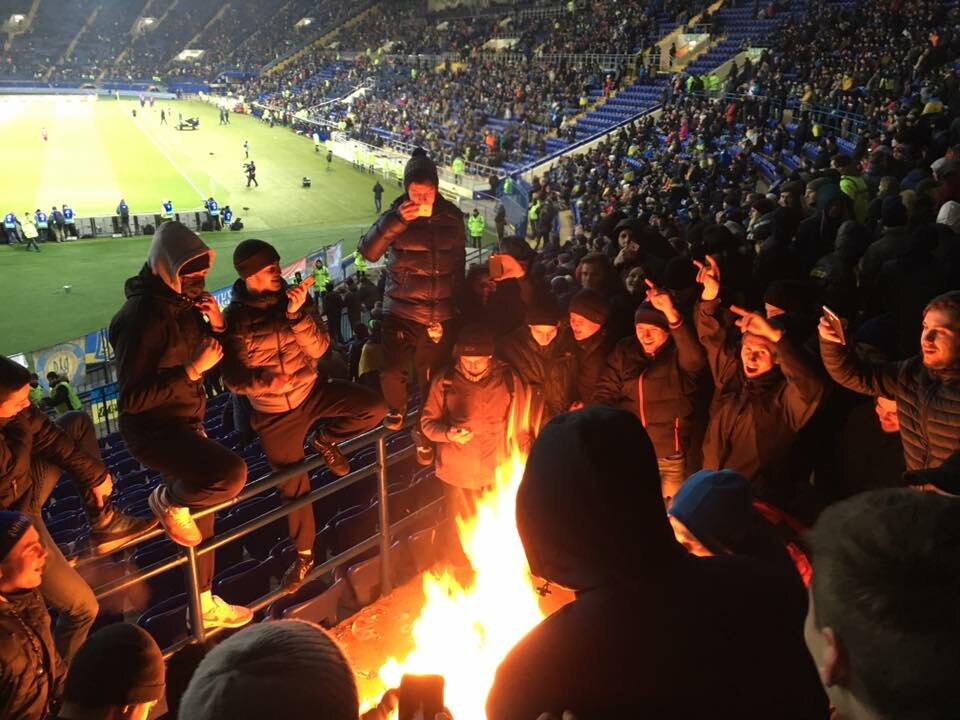 На матче в Харькове "зажигал" сектор, где собрались наиболее радикально настроенные украинские фанаты, решившие отметить возвращение в город футбола международного уровня спустя три года сожжением сербского флага (фанатское движение Сербии не раз выражало поддержку присоединения Крыма к России и создание на юго-востоке страны "Новороссии", не раз вывешивая на секторах флаги самопровозглашенных республик Донбасса - ред.)