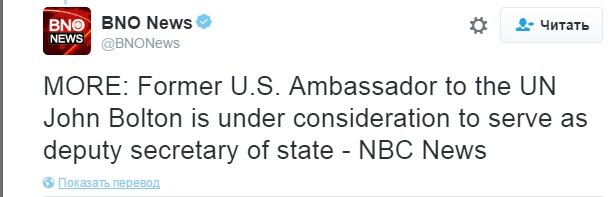Кроме того, должность заместителя госсекретаря США может застолбить за собой Джон Болтон, в прошлом представлявший США в Совбезе ООН. После победы Трампа Болтон также фигурировал среди кандидатов на кресло главы Госдепа.