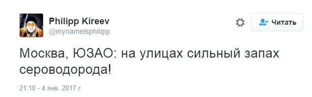 Больше всего сообщений поступает от жителей юго-запада столицы. Москвичи утверждают, что запах сероводорода чувствуется как на улице, так и жилых домах. Жители столицы уже организовали перекличку в социальных сетях, пытаясь выяснить причину превышения концентрации в воздухе вредного вещества и в какие службы следует обращаться в связи с возникшей ситуацией.