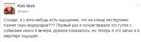 "Звоню в департамент природопользования через 777 77 77. Мне говорят: там все время занято, и вообще по вашему району уже были звонки про сероводород. Может не будете ждать?".