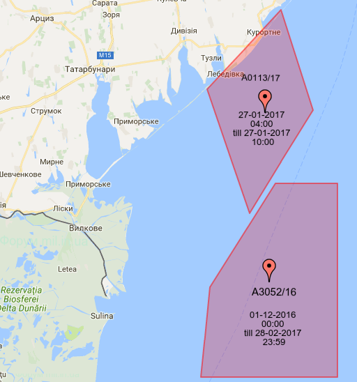 Ракетные запуски запланированы на пятницу, 27 января, и пройдут на одном из оборудованных полигонов в Татарбунарском районе над нейтральными водами, однако все также в непосредственной близости от Крымского полуострова.