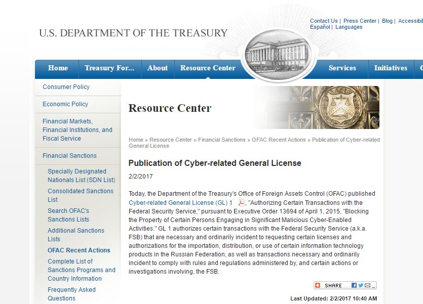 Стоит отметить, что в конце декабря 2016 года Барак Обама заявил, что вводимые им санкции затронут девять лиц и организаций в России, в том числе и ФСБ и ГРУ.