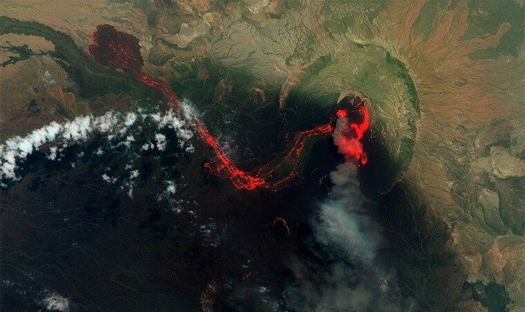 В космическом ведомстве NASA опубликовали фотоматериал эфиопского вулкана Эрта Але, который нарекли ʺВратами Адаʺ. Данный фотоснимок был сделан посредством орбитального спутника Landsat 8. Об этом пишет издание ʺРоссийский Диалогʺ.
