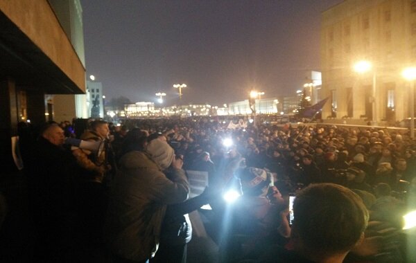 Как утверждают белорусские СМИ, на акцию протеста вышли около восьми тысяч человек. Митингующие прошлись маршем по центру города, начав жечь файеры и выкрикивать националистические лозунги, сообщает "Российский Диалог".