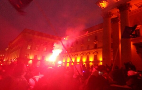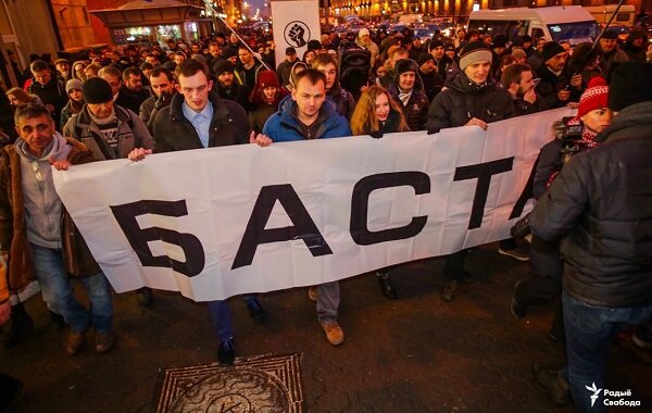 Сама акция протеста не была согласована с властями страны, а многотысячная колонна и организаторы мероприятия пока не собираются расходиться. Протестующие стучат в барабаны и поют песни, ставшие символами украинского "майдана" в 2013-14 годах.