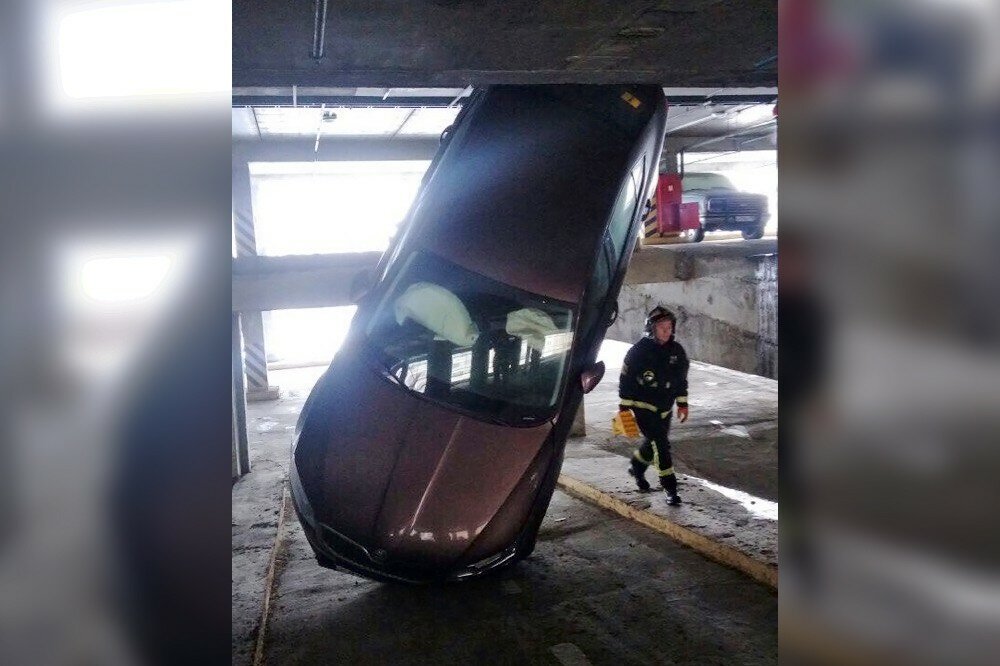 При этом иномарка не упала, а повисла на уровне 8-го этажа. Находившиеся в салоне водитель и пассажир не пострадали и отделались легким испугом. От ушибов их спасла подушка безопасности, передает “Российский Диалог”.