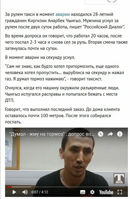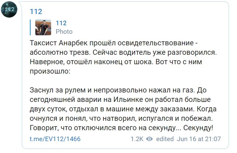 Инцидент произошел на улице Ильинка, возле дома 5/2. За рулем находился гражданин Киргизии Анарбек Чынгыз. Телеграм-канал "112" утверждает, водитель уже прошел освидетельствование, которое подтвердило, что он не находился в состоянии алкогольного опьянения. Мужчина отметил, что заснул за рулем и непроизвольно нажал на газ. До сегодняшнего инцидента он работал больше двух суток, отдыхал в машине между заказами.