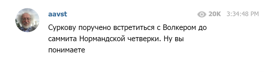 "Суркову поручено встретиться с Волкером до саммита "Нормандской четверки". Ну вы понимаете", - сказано в сообщении.
