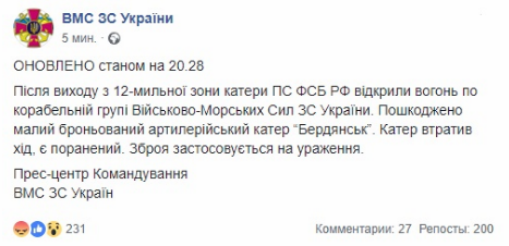 Напомним, ранее "Российский Диалог" сообщал читателям о скандальном происшествии в Керченском проливе, где погранслужба ФСБ России открыла огонь по украинским кораблям, совершившим провокационные действия.