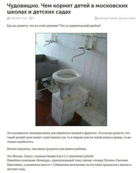 Из-за того, что лживый материал был сделан очень некачественно, «расследование» Навального чрезвычайно быстро разоблачили. Особенно общественности запомнился использованный блогером в качестве доказательства снимок унитаза, который якобы использовался для обработки овощей и фруктов. Как выяснилось, «умытаз» появился в Сети еще в 2011-м году, и никак не связан с «Конкордом». - сообщает "Ридус"