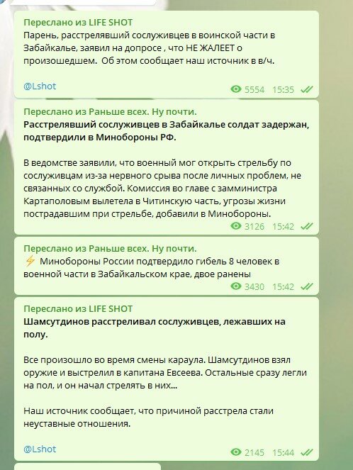 Военнослужащий в Забайкалье открыл огонь по сослуживцам в Читинской области. Сам стрелок жив, однако 10 человек пострадали, передает Российский Диалог