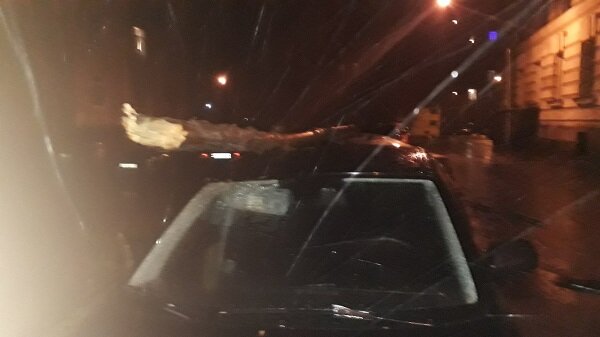 Деревья падали посреди дорог, перекрывая дороги, как на улице Дегтярева.