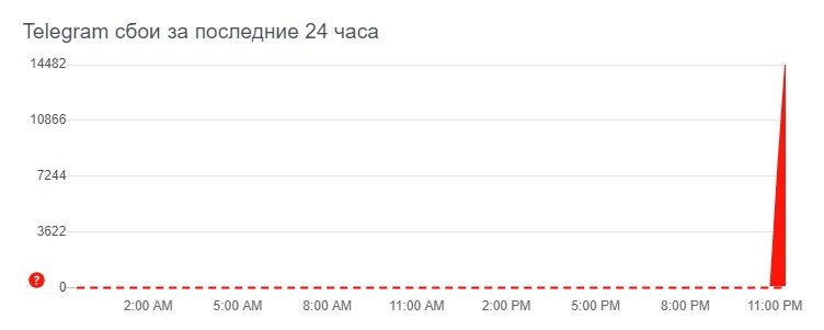На графике показано, что проблемы в работе мессенджера начались в районе 23:00 мск.