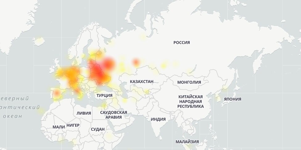 Судя по карте, размещенной на портале downdetector.ru, наиболее серьезные сбои наблюдаются в России, Белоруссии и на Украине.