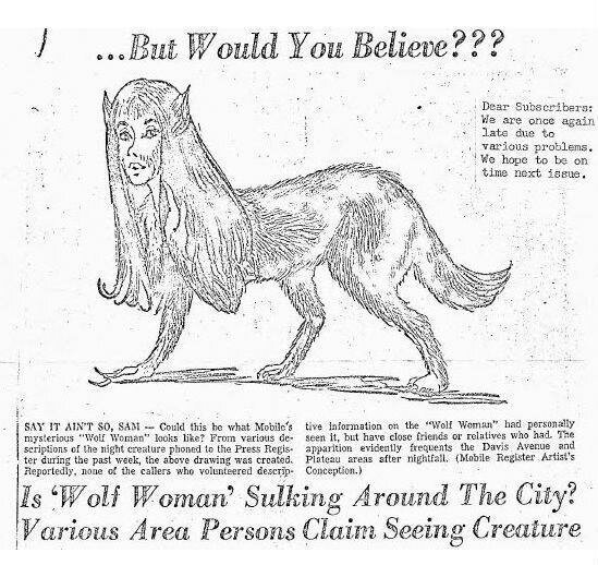 Как было установлено, ареалом обитания загадочного существа был штат Алабама. По словам местных жителей, передняя часть обладала обликом представительницы прекрасного пола, а задняя была похожа на волка. Более того, создание обладало способностью одновременно передвигаться на человеческих и волчьих конечностях. Об этом сообщает издание ʺРоссийский Диалогʺ.