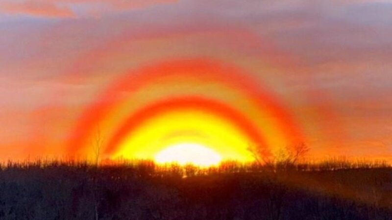 Недавно, в регионе Великих озер, эксперту удалось запечатлеть феномен, предусматривающий наличие трех колец, которые располагаются над небесным светилом. Данный феномен немного обескуражил пользователей Интернета, которые был удивлены занимательным оптическим явлением. Все предположения о возможном северном сиянии показались нелепыми, ведь закат небесного светила происходить на западе.