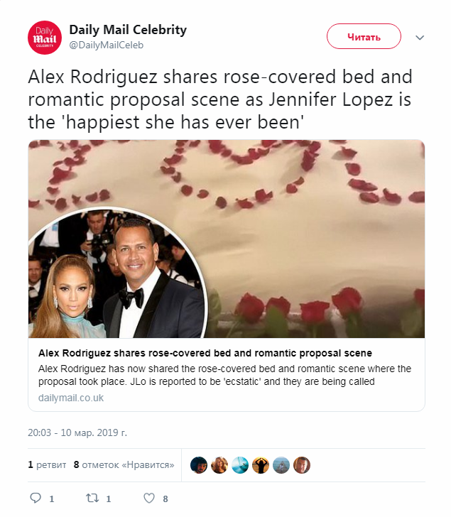 О помолвке Лопес и Родригеса стало известно 10 марта. Будущие супруги знакомы уже полтора десятка лет, однако их роман начался только чуть более года назад. Для 49-летней Лопес это будет четвертый брак, для 43-летнего Родригеса - второй.