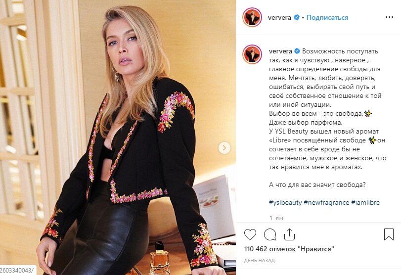 Также под публикацией исполнительница не забыла поинтересоваться у свои поклонников, что же для них значит свобода. Свое мнение они поспешили оставить в комментариях под записью. Сейчас их там насчитывается уже больше нескольких тысяч.