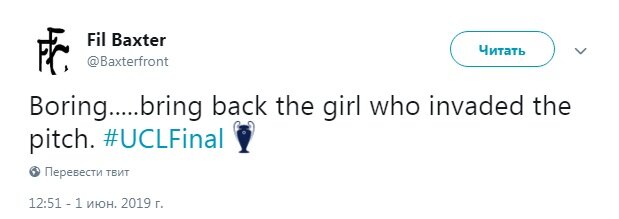 "Матч скучный, верните ту девушку, которая выбегала на поле.