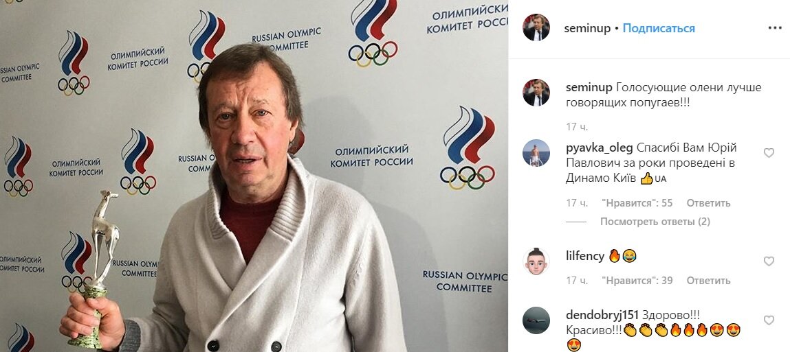 В ответ на это наставник железнодорожников опубликовал в своем Instagram-аккаунте фото с наградой и подписал снимок следующими словами: "Голосующие олени лучше говорящих попугаев!"