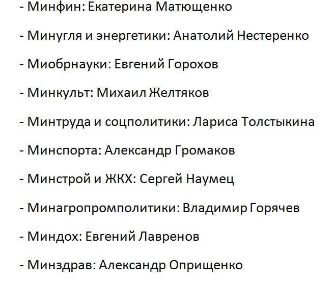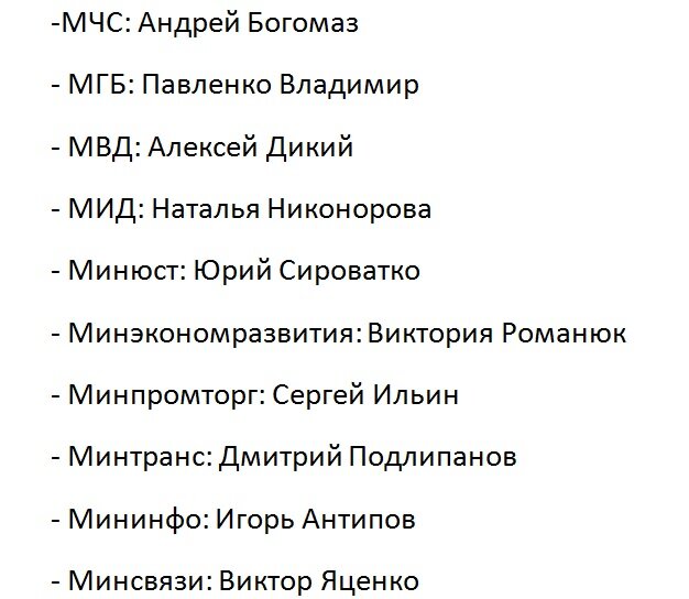 Предлагаем вашему вниманию полный список министров: