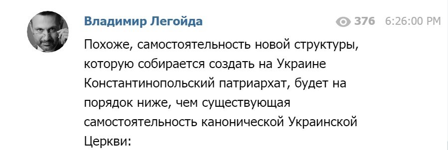 Глава синодального Отдела по взаимоотношениям Церкви с обществом и СМИ Владимир Легойда уже успел прокомментировать материал "Вестей". В своем телеграм-канале он написал, что самостоятельность новой церковной структуры на Украине, скорее всего, будет на порядок ниже, чем существующая каноническая Украинская православная церковь.
