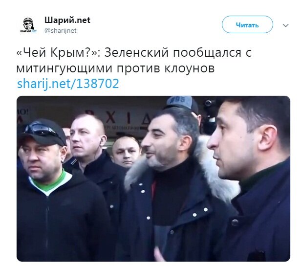 Радикалы окружили актера и требовали от него ответить на вопрос, чей Крым. Зеленский заявил, что считает Крым и Донбасс и украинскими.