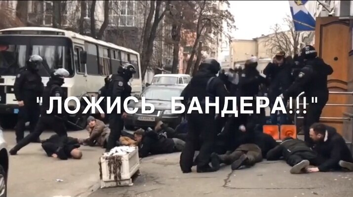 Во время вчерашней драки между сотрудниками правоохранительных органов и членами украинской ультраправой экстремистской организации С14 (запрещена в РФ - ред.) один из спецназовцев выкрикнул фразу "Ложись, Бандера", передает "Российский Диалог".