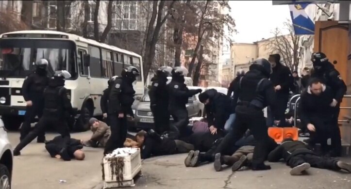 Инцидент произошел возле Подольского управления полиции в Киеве, которое экстремисты намеревались взять штурмом. Началось все с того, что сотрудники правоохранительных органов задержали группу лиц в масках на подходе к Контрактовой площади, где проходил митинг кандидата в президенты Украины Юлии Тимошенко. У них обнаружили ножи, газовые баллончики и зеленку.