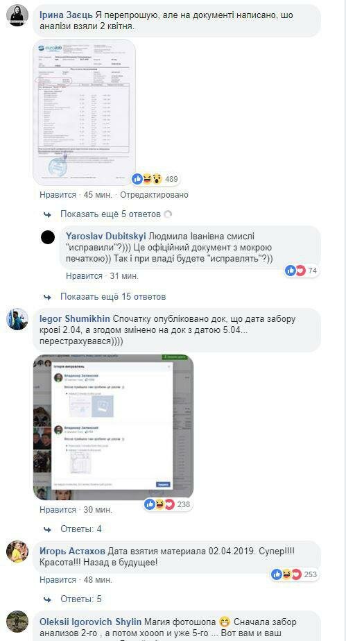 Вместе с тем, в пояснениях лаборатории говорится, что сотрудник лаборатории Eurolab написал в документе об анализах кандидата в президенты Владимира Зеленского неправильную дату.