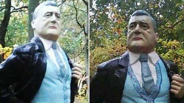 Как видно по фотографиям, Порошенко изображен заметно исхудавшим, при этом качество скульптуры оставляет желать лучшего. Неизвестные разукрасили этот памятник, облачив лидера партии "Европейская солидарность" в черный пиджак, белую рубашку с галстуком и голубой жилет.