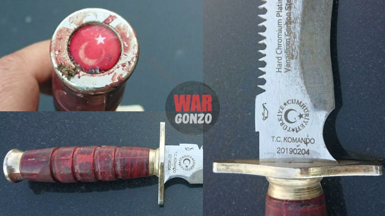 Источник сообщает, что ВС Азербайджана отступили от Мартуни, чтобы бросить все свои силы на штурм Шуши. Уже после отступления противника у одного из убитых офицеров был обнаружен нож, но необычный, а который в Турции изготовляются по спецзаказу для спецназа. Все эти ножи пронумерованы.