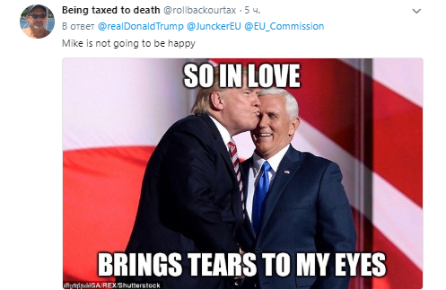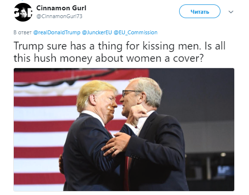 Для того чтобы быть более убедительным, американский лидер разместил фото, где запечатлено, как он целуется с главой Еврокомиссии Жаном-Клодом Юнкером.