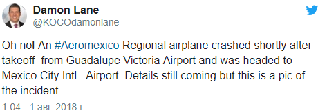 Пугающие известия поступают из Мексики, как передает "Российский Диалог" со ссылкой на Sky News, в штате Дуранго потерпел крушение самолет авиакомпании Aeromexico.