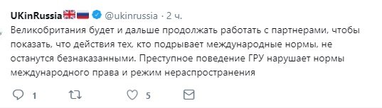 "Россия уводит в сторону от фактов, только в марте было представлено сразу 37 вымышленных версий произошедшего", – подчеркнул посол. Цитаты его выступления позже были опубликованы на странице посольства в социальной сети.