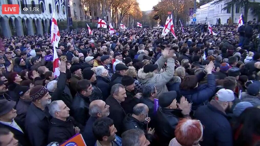 В воскресенье, 2 декабря, в Тбилиси проходит объединенный митинг оппозиции, чей кандидат Григол Вашадзе проиграл президентские выборы, передает "Российский Диалог".