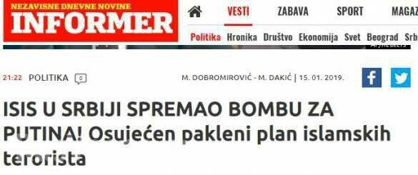 По данным канала “Силовики”, во время проверки выяснилось, что Алибашича готовил теракт к посещению Белграда российским лидером. Сейчас силовики изучают круг общения задержанного и разыскивают возможных сообщников мужчины. Пока задержанный не выдал никого. В Сербии отмечают, что держат ситуации под контролем.